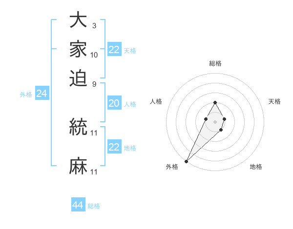 大家迫 統麻さんを姓名の画数から五運を鑑定