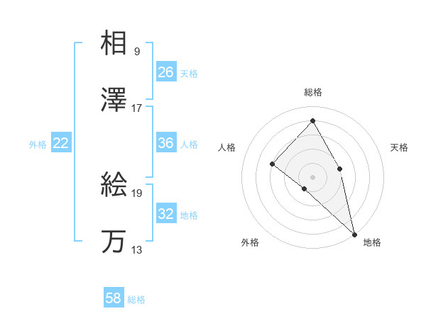 相澤 絵万さんを姓名の画数から五運を鑑定