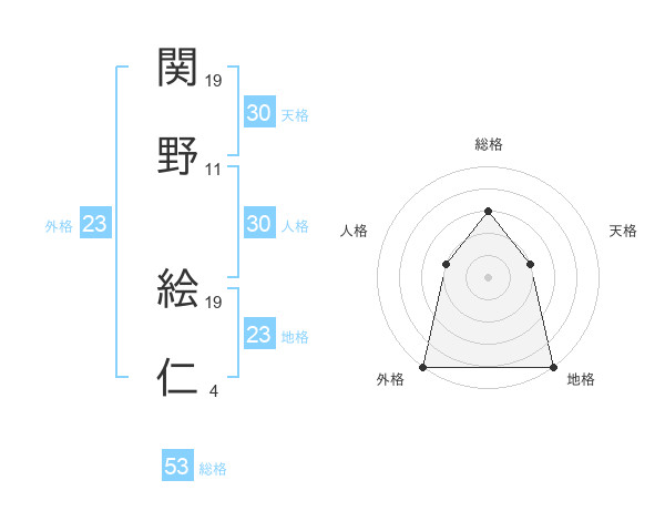 関野 絵仁さんを姓名の画数から五運を鑑定
