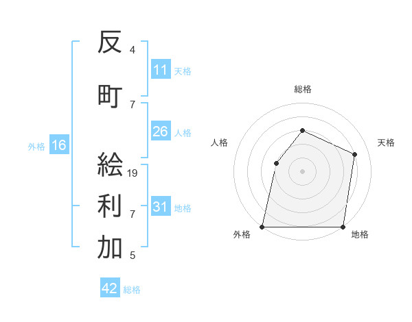 反町 絵利加さんを姓名の画数から五運を鑑定