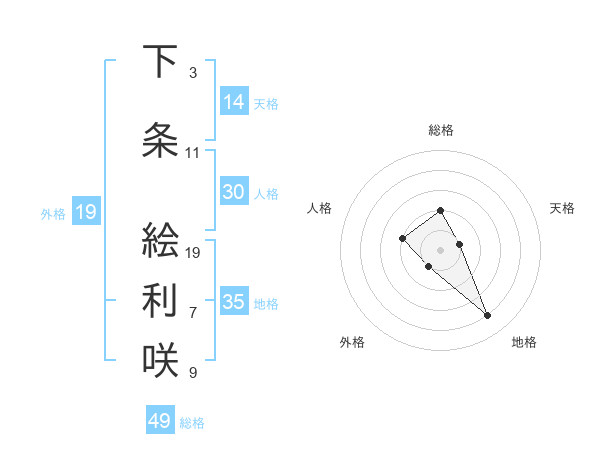 下条 絵利咲さんを姓名の画数から五運を鑑定