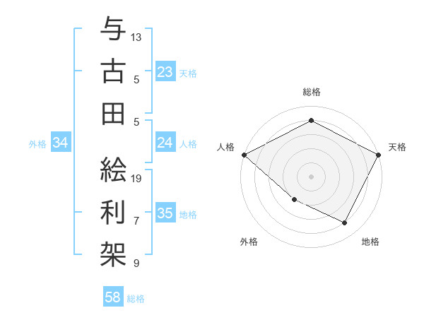 与古田 絵利架さんを姓名の画数から五運を鑑定