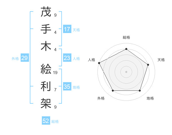 茂手木 絵利架さんの総格は52画の4点!