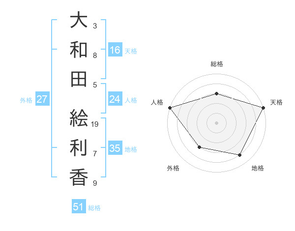 大和田 絵利香さんを姓名の画数から五運を鑑定