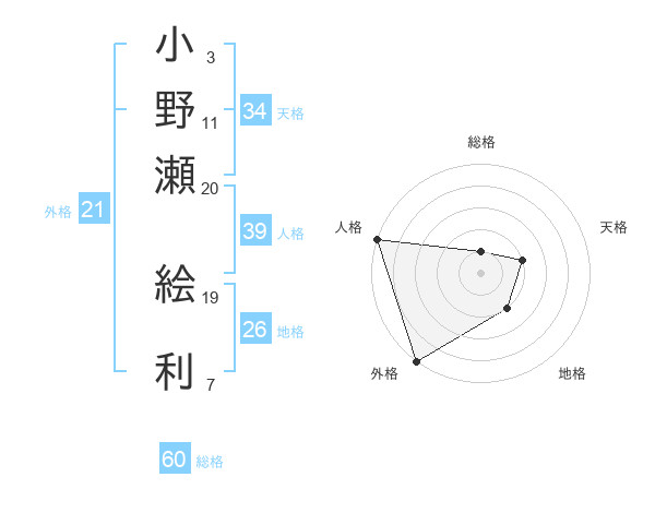 小野瀬 絵利さんを姓名の画数から五運を鑑定