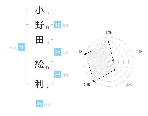 小野田 絵利さんの総格は45画の4点!