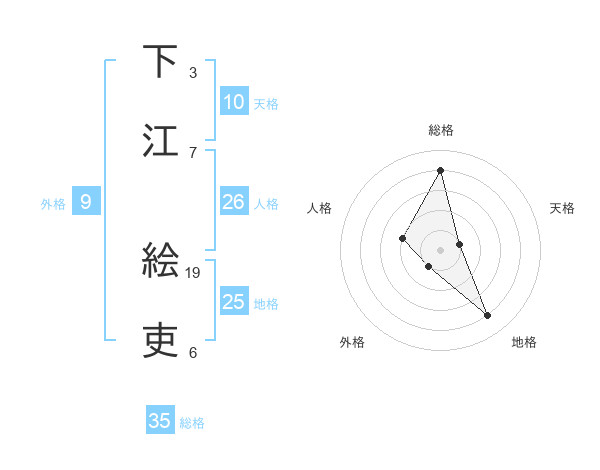 下江 絵吏さんを姓名の画数から五運を鑑定