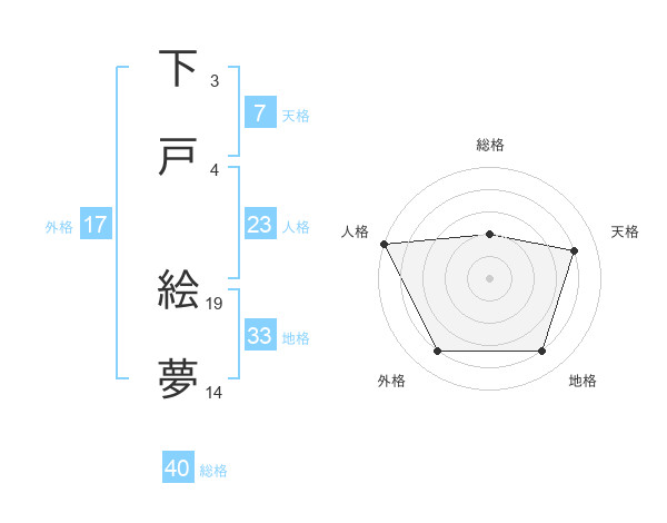 下戸 絵夢さんを姓名の画数から五運を鑑定