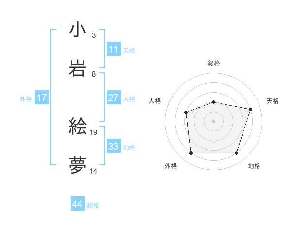 小岩 絵夢さんを姓名の画数から五運を鑑定