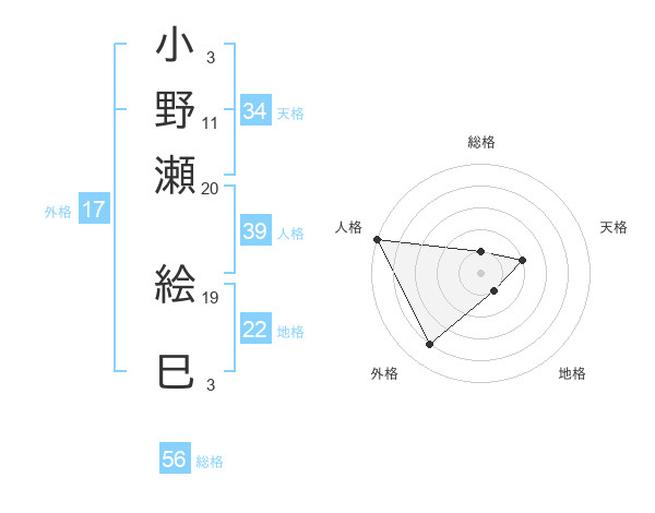 小野瀬 絵巳さんを姓名の画数から五運を鑑定
