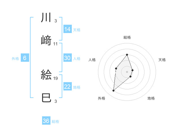 川﨑 絵巳さんを姓名の画数から五運を鑑定