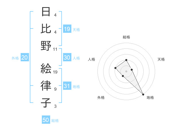 日比野 絵律子さんを姓名の画数から五運を鑑定