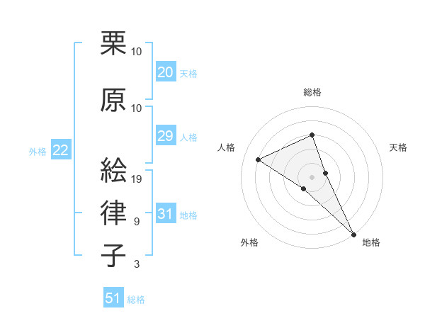 栗原 絵律子さんを姓名の画数から五運を鑑定