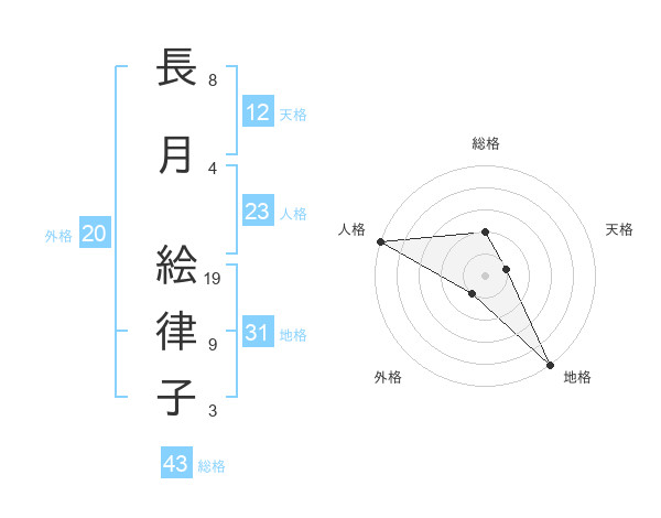 長月 絵律子さんを姓名の画数から五運を鑑定