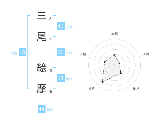 三尾 絵摩さんを姓名の画数から五運を鑑定