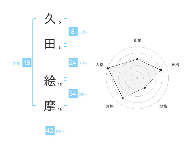久田 絵摩さんの天格は8画の4点!