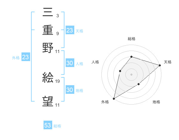 三重野 絵望さんの外格は23画の5点!