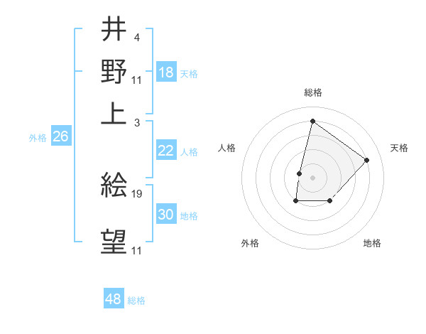 井野上 絵望さんの総格は48画の4点!