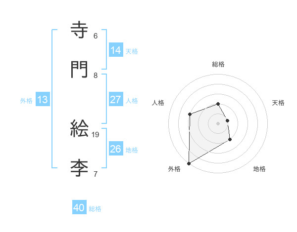 寺門 絵李さんの外格は13画の5点!