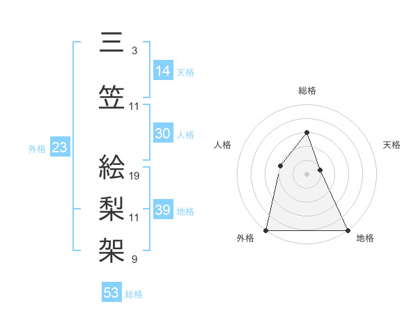 三笠 絵梨架さんを姓名の画数から五運を鑑定
