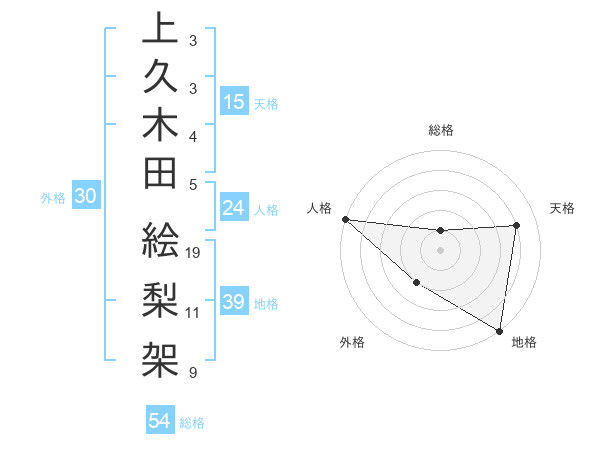 上久木田 絵梨架さんを姓名の画数から五運を鑑定