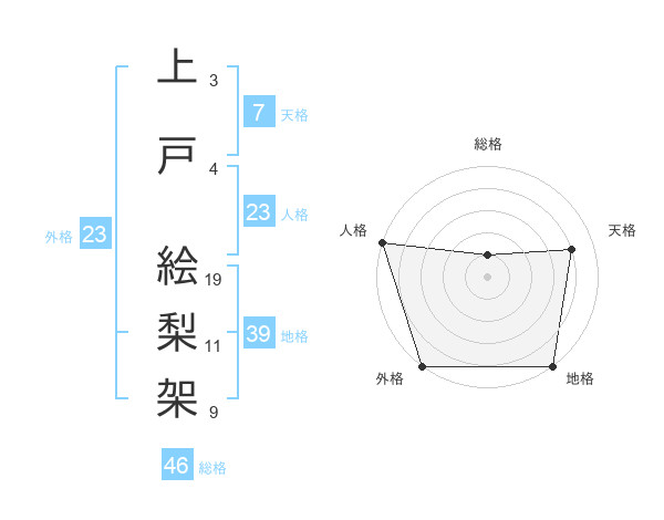 上戸 絵梨架さんを姓名の画数から五運を鑑定