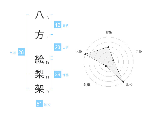 八方 絵梨架さんの総格は51画の3点!