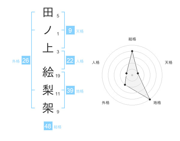 田ノ上 絵梨架さんを姓名の画数から五運を鑑定