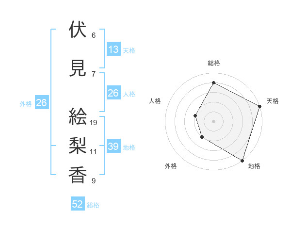 伏見 絵梨香さんを姓名の画数から五運を鑑定