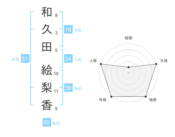 和久田 絵梨香さんを姓名の画数から五運を鑑定