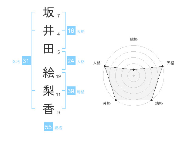 坂井田 絵梨香さんを姓名の画数から五運を鑑定