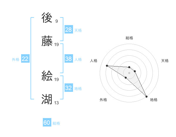 後藤 絵湖さんを姓名の画数から五運を鑑定