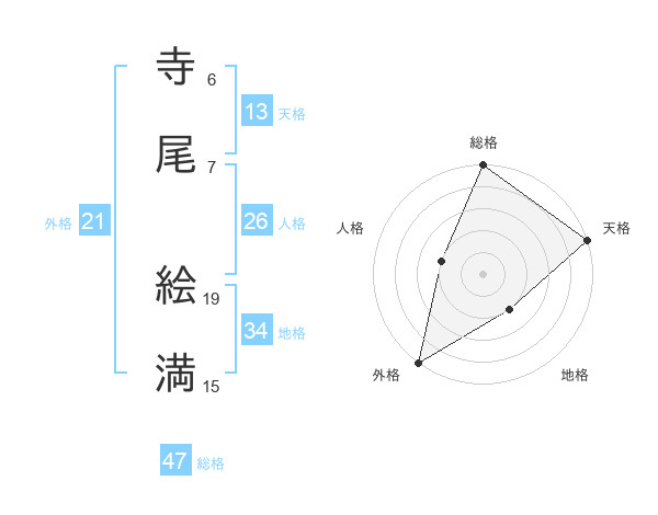 寺尾 絵満さんを姓名の画数から五運を鑑定
