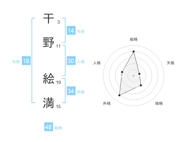 干野 絵満さんの総格は48画の4点!