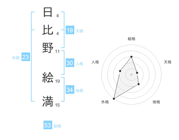 日比野 絵満さんを姓名の画数から五運を鑑定