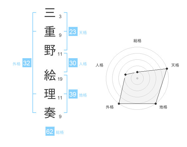 三重野 絵理奏さんを姓名の画数から五運を鑑定