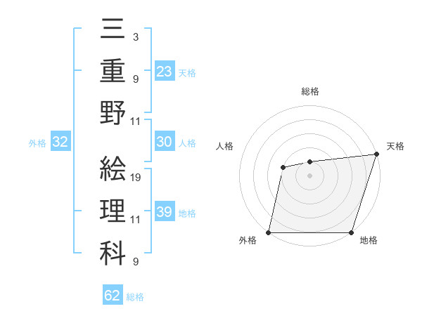 三重野 絵理科さんの天格は23画の5点!