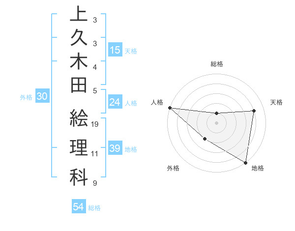 上久木田 絵理科さんを姓名の画数から五運を鑑定