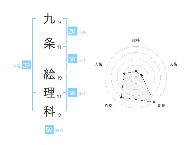 九条 絵理科さんを姓名の画数から五運を鑑定