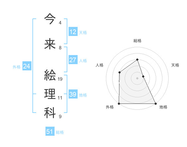 今来 絵理科さんの総格は51画の3点!