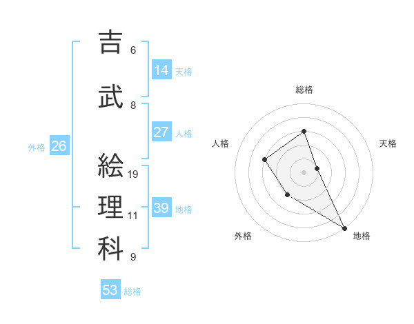 吉武 絵理科さんを姓名の画数から五運を鑑定
