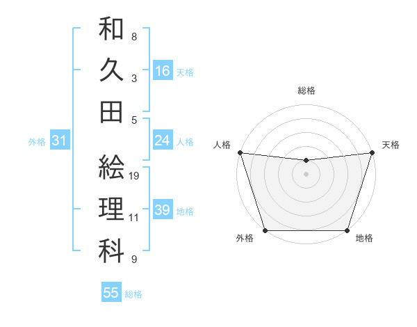 和久田 絵理科さんを姓名の画数から五運を鑑定