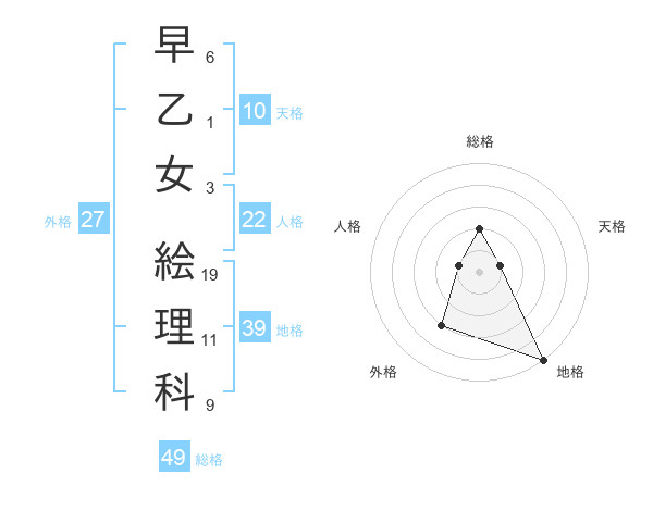 早乙女 絵理科さんの総格は49画の2点!