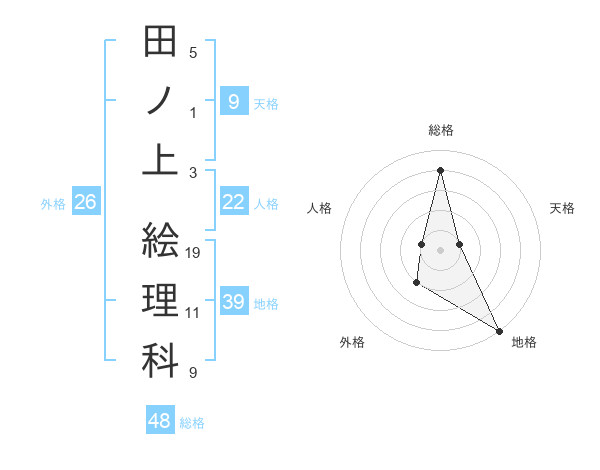 田ノ上 絵理科さんの地格は39画の5点!