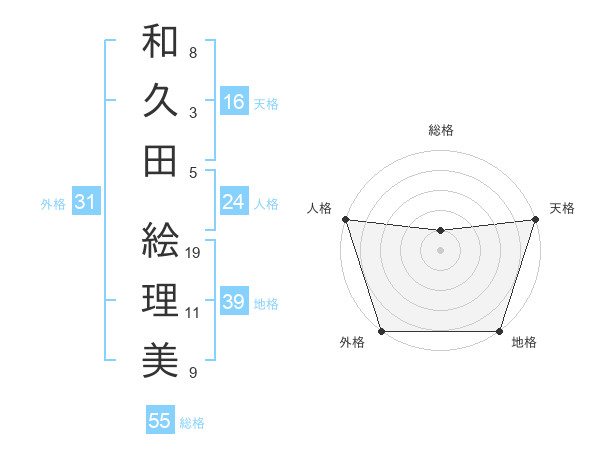 和久田 絵理美さんを姓名の画数から五運を鑑定