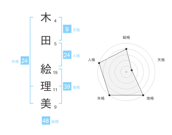 木田 絵理美さんを姓名の画数から五運を鑑定
