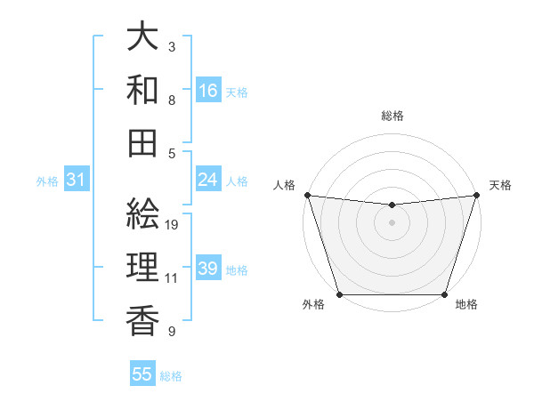 大和田 絵理香さんの外格は31画の5点!