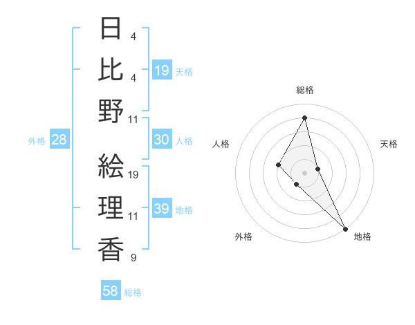 日比野 絵理香さんを姓名の画数から五運を鑑定