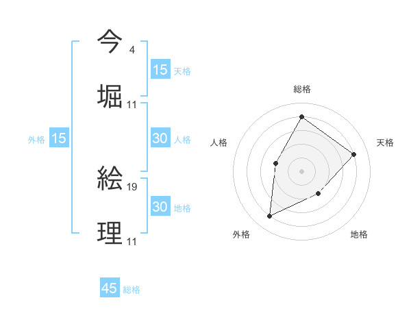 今堀 絵理さんの総格は45画の4点!