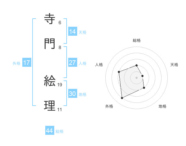 寺門 絵理さんを姓名の画数から五運を鑑定